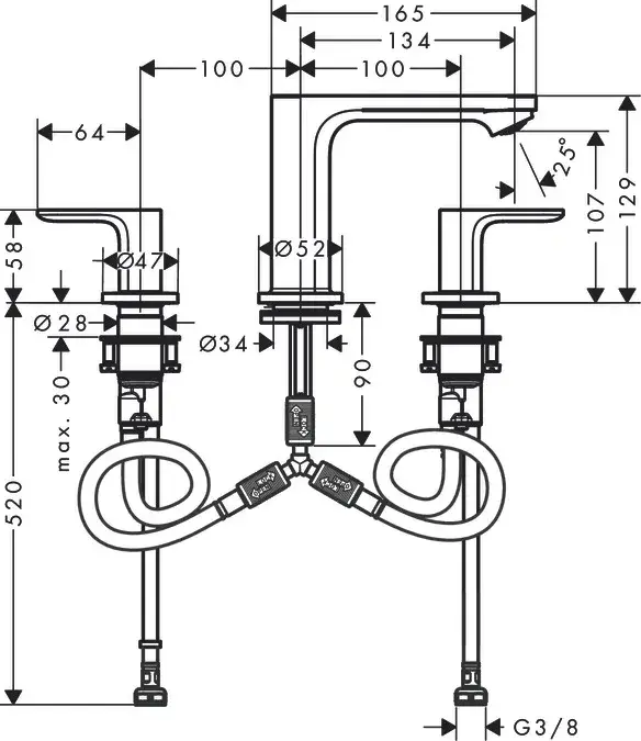Hansgrohe Rebris S Смеситель для раковины на 3 отверстия двухвентильный, цвет: хром 72530000