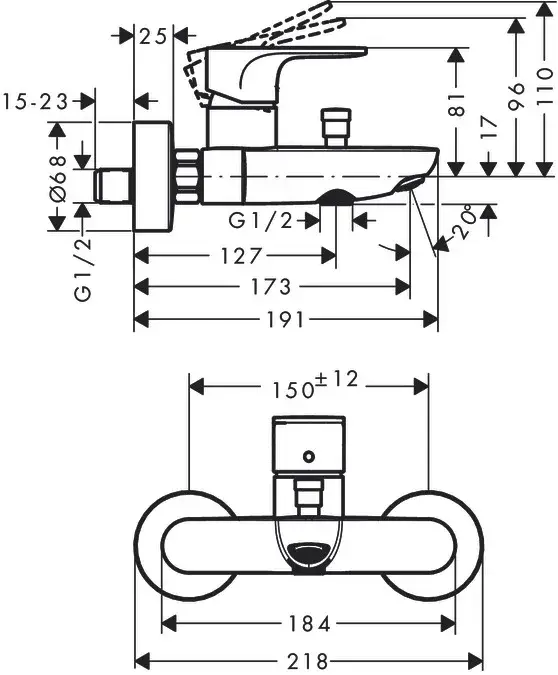 Hansgrohe Rebris S Смеситель для ванны 2 режима расхода воды, излив 17,3 см, цвет: матовый черный 72443670