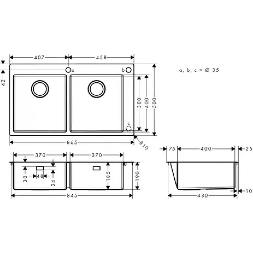 Hansgrohe S71 Кухонная мойка встраиваемая сверху 2 чаши 86,5x50 см, цвет: нержавеющая сталь 43303800