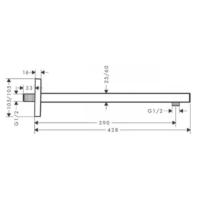 Hansgrohe Square Держатель верхнего душа 38.9см., настенный, цвет: хром