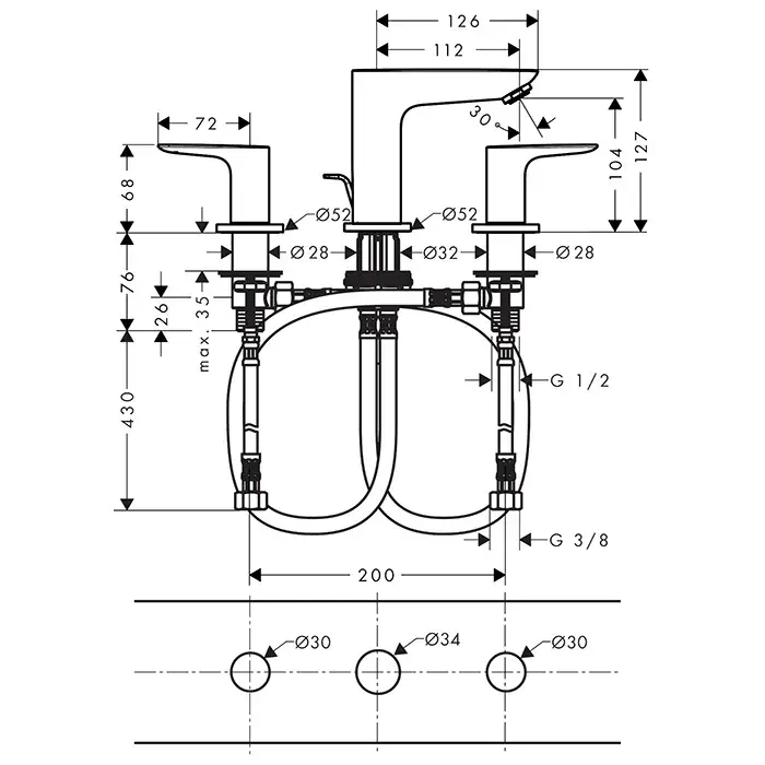 Hansgrohe Talis E Смеситель для раковины на 3 отверстия двухвентильный, цвет: шлифованная бронза 71733140