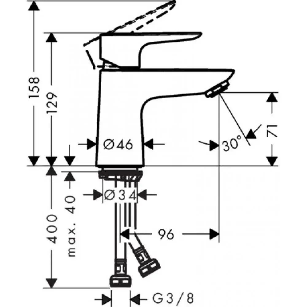 Hansgrohe Talis E, Смеситель для раковины, Без донного клапана, Цвет: хром