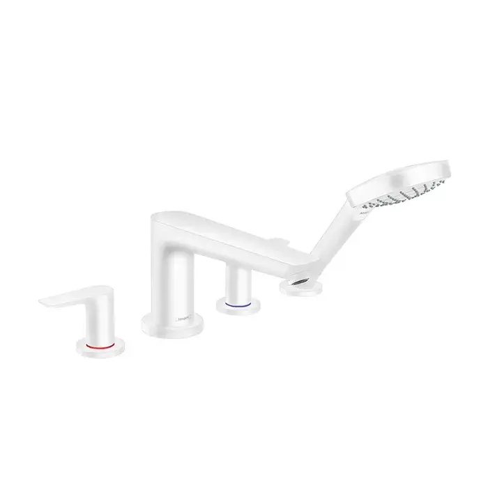 Hansgrohe Talis E Смеситель на борт ванны, на 4 отв, с ручным душем, излив 196мм, цвет: белый матовый