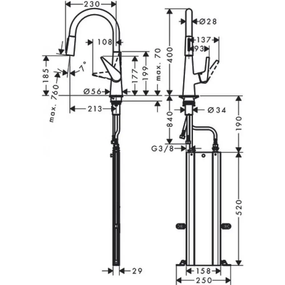Hansgrohe Talis M51 Смеситель для кухонной мойки однорычажный 200 с выдвижным изливом, цвет: хром 73851000