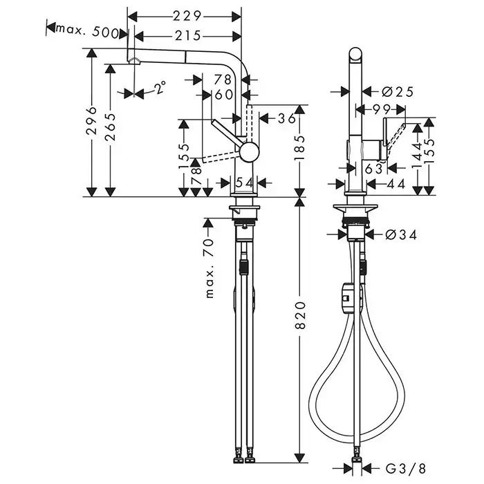HG Talis M54 Кухонный смеситель однорычажный, 270, с вытяжным изливом 1jet, матовый черный
