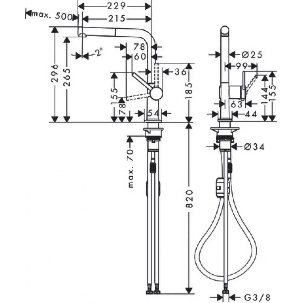 Hansgrohe Talis M54 Смеситель для кухонной мойки однорыч. 270, с выдв. излив. цвет: матовый черный 72808670
