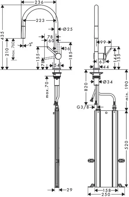 Hansgrohe Talis M54 Смеситель для кухонной мойки однорычажный U 220, цвет: матовый черный 72807670