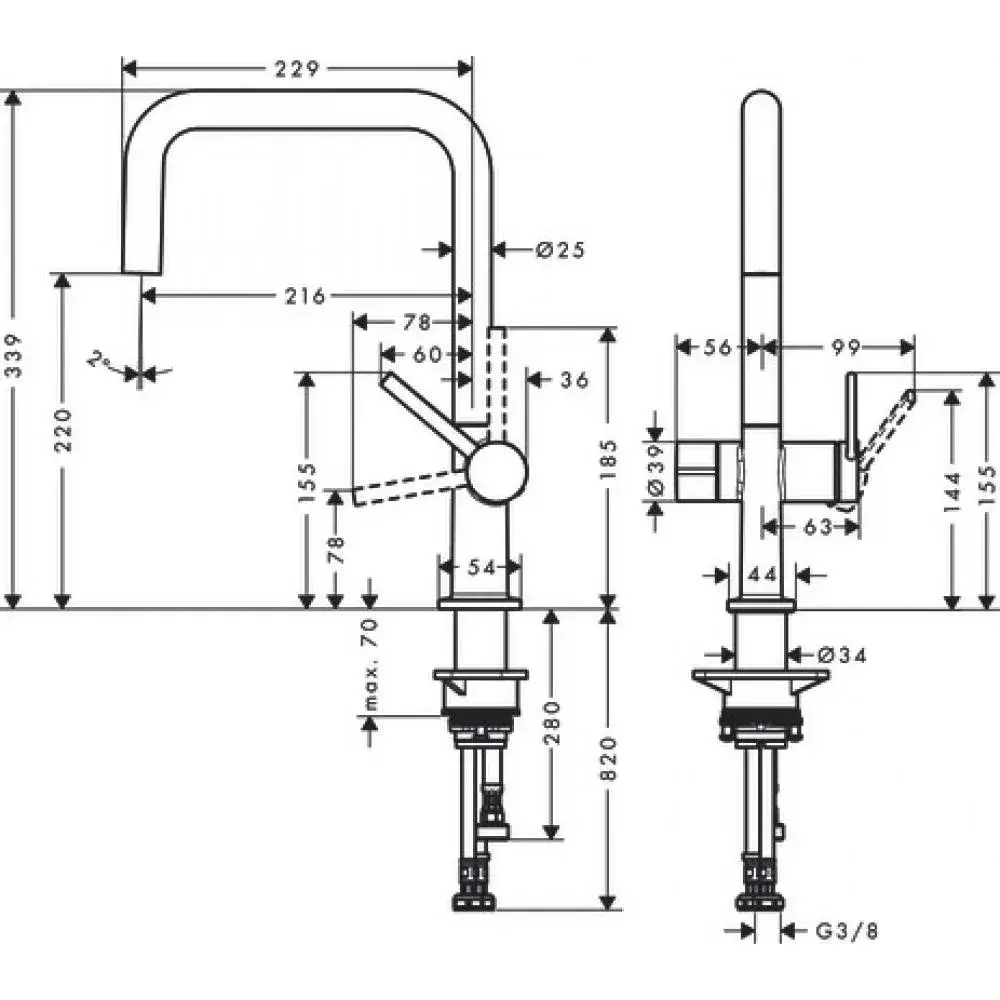 Hansgrohe Talis M54 Смеситель для кухонной мойки однорычажный U 220, цвет: матовый черный 72806670