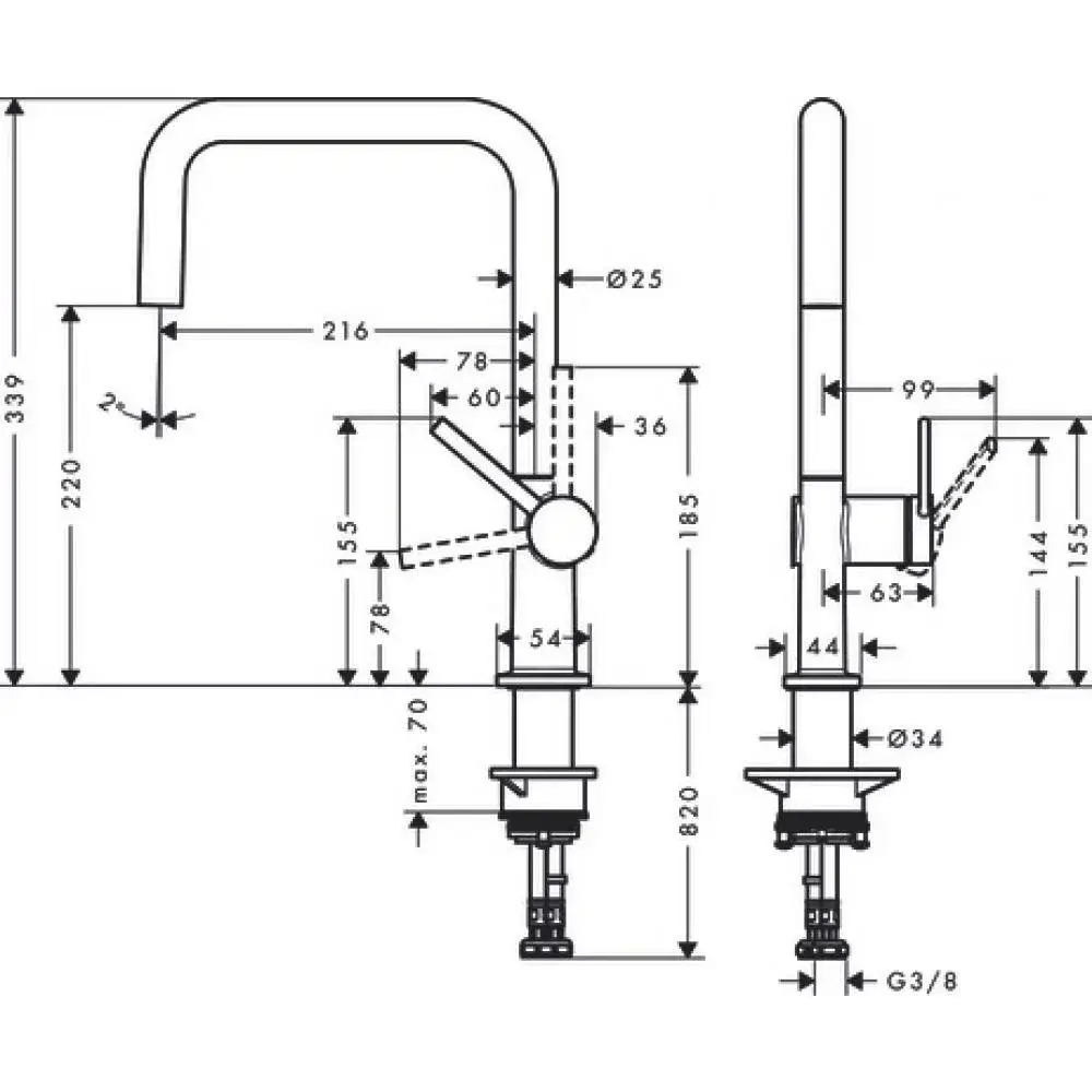 Hansgrohe Talis M54 Смеситель для кухонной мойки однорычажный U 220, цвет: нержавеющая сталь 72807800