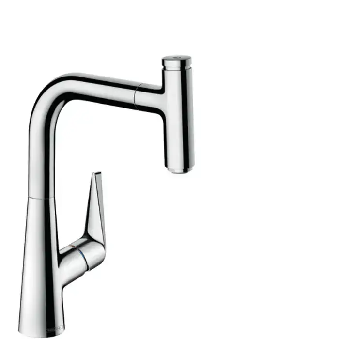 HG Talis Select M51 Смеситель для кухни, на 1 отв, поворотный излив 208мм с вытяжным душем, 1jet, h223мм, sBox, кнопка вкл/выкл, цвет: хром