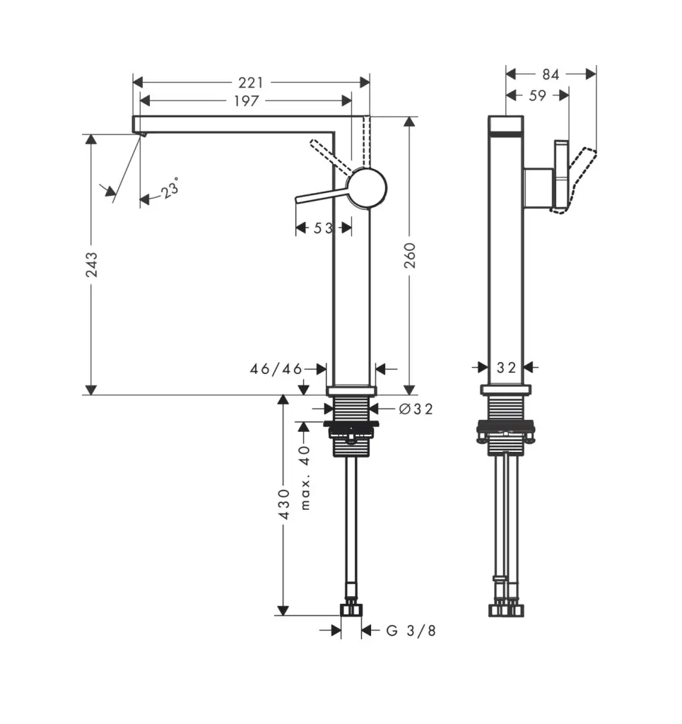 Hansgrohe Tecturis E Смеситель для раковины, высокий, без донного клапана, цвет: матовый черный 73072670