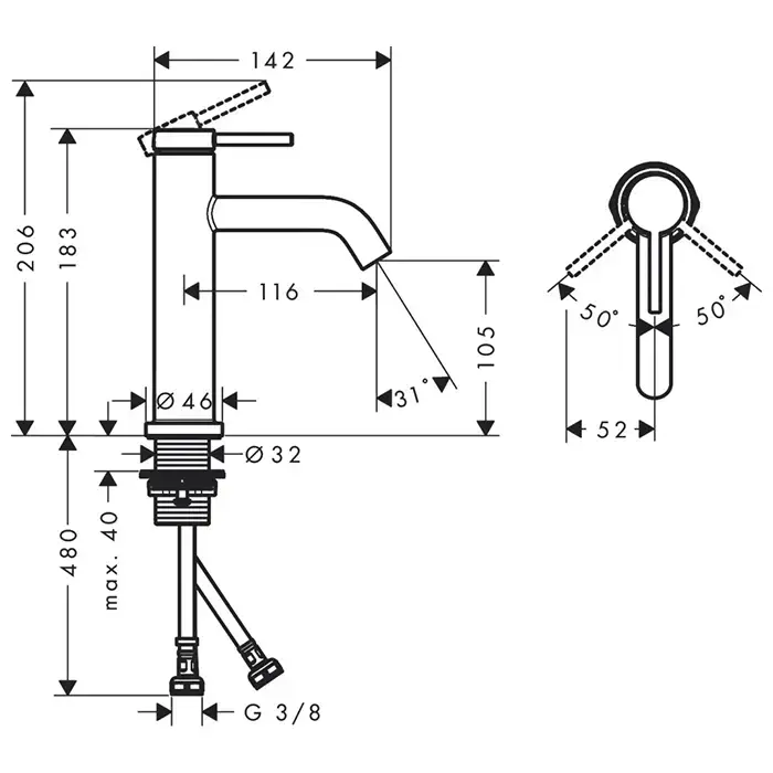 Hansgrohe Tecturis S Смеситель для раковины, 1 отв., с донным клапаном, цвет: хром
