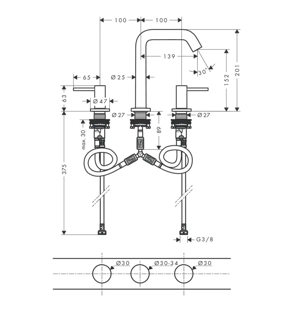 Hansgrohe Tecturis S Смеситель для раковины на 3 отверстия двухвентильный, цвет: шлифованная бронза 73330140