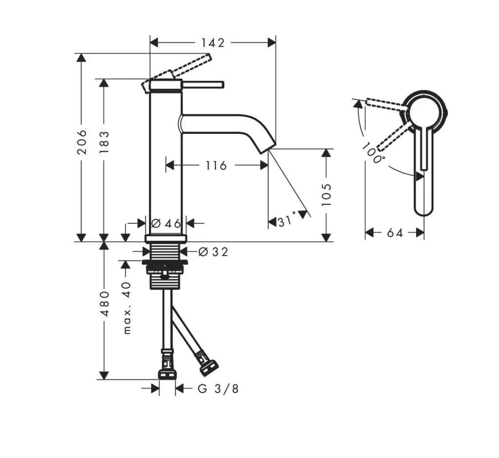 Hansgrohe Tecturis S Смеситель для раковины однорычажный, без донного клапана, цвет: матовый черный 73312670