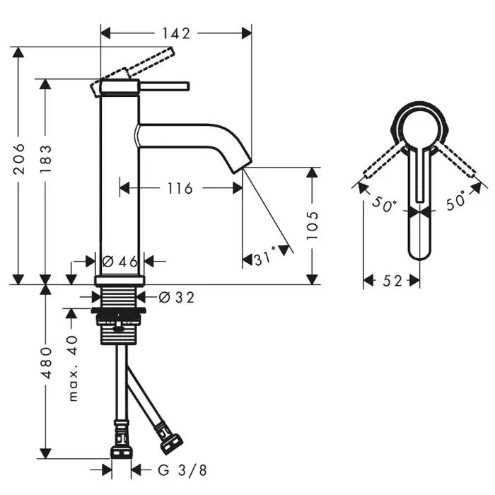 Hansgrohe Tecturis S Смеситель для раковины однорычажный, цвет: шлифованная бронза 73311140