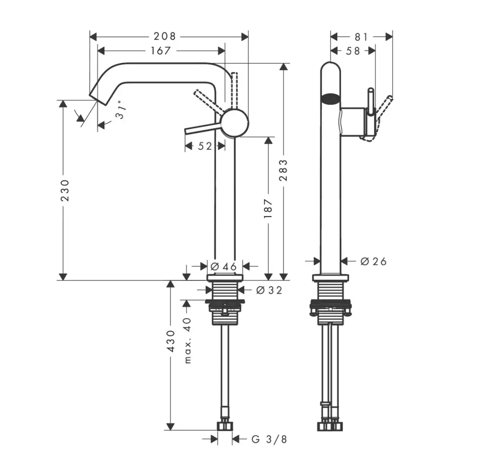 Hansgrohe Tecturis S Смеситель для раковины, высокий, без донного клапана, цвет: шлифованная бронза 73372140