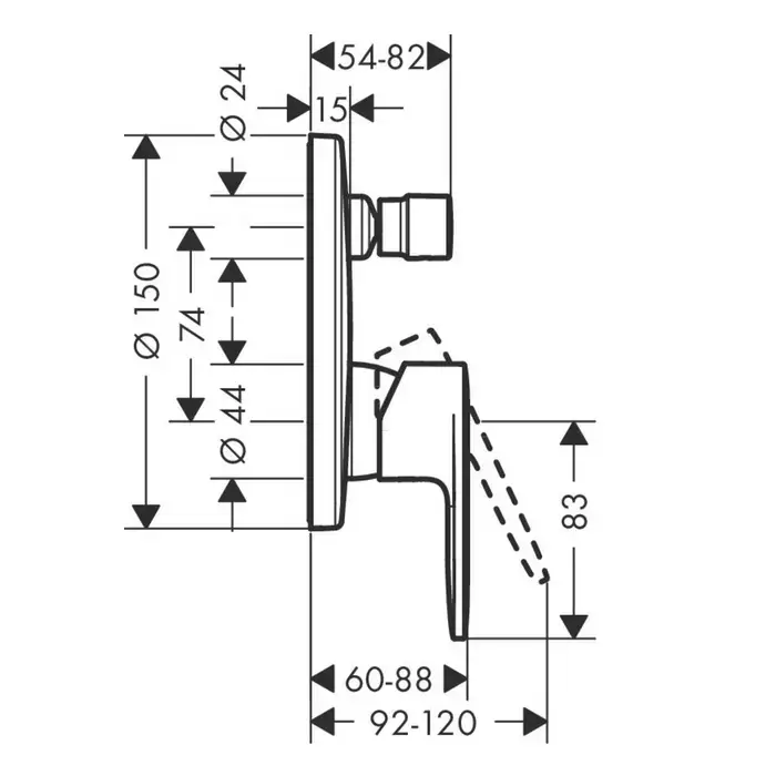 HG Vernis Blend Встраиваемый смеситель для ванны с переключателем (внешняя часть), цвет: матовый черный