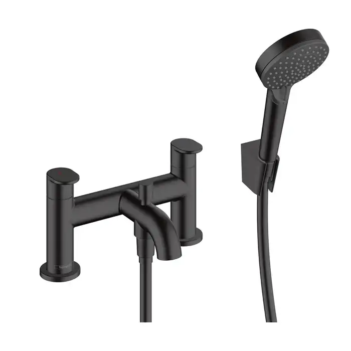 HG Vernis Blend Смеситель на борт ванны, на 2 отверстия, и ручной душ Vernis Blend Vario, цвет: матовый черный