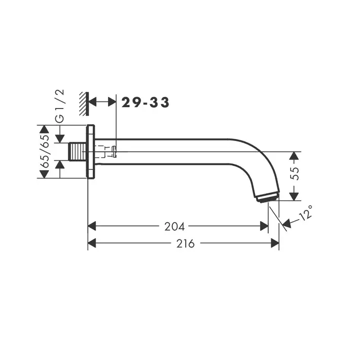 Hansgrohe Vernis Shape Излив настенный для ванны 20,4 см, цвет: матовый черный 71460670