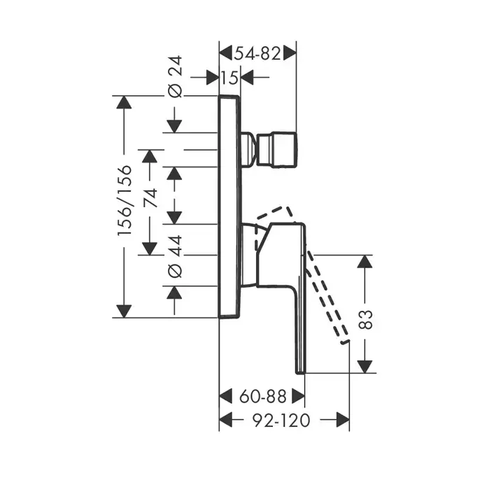 HG Vernis Shape Встраиваемый смеситель для ванны с переключателем (внешняя часть), цвет: матовый черный