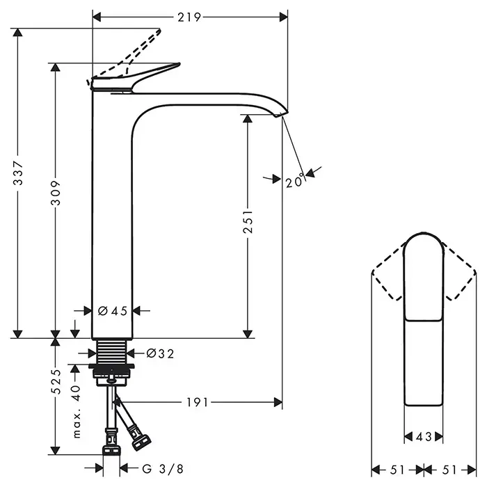 Hansgrohe Vivenis Смеситель для раковины, на 1 отв., высота: 30.9см., излив: 21.9см., цвет: хром