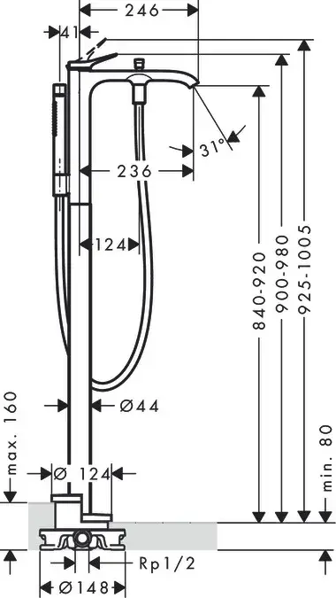 Hansgrohe Vivenis Смеситель для ванны с душем напольный, отдельностоящий, цвет: хром 75445000