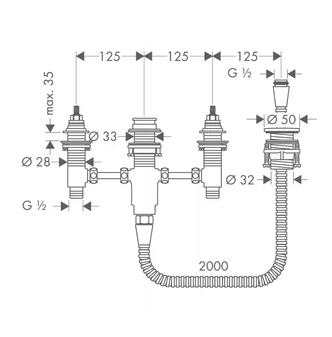 Hansgrohe Встраиваемая часть смесителя на борт ванны на 4 отверстия 13244180