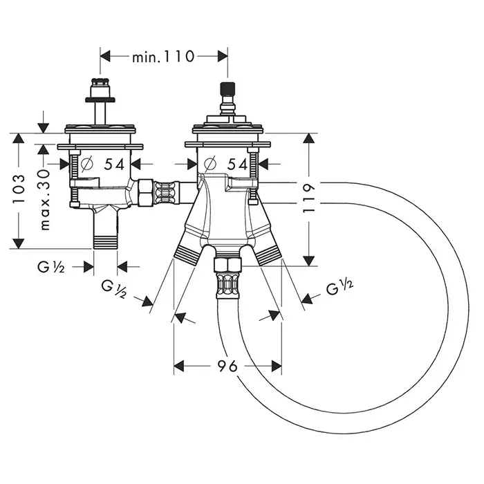 Hansgrohe Встраиваемая часть термостата на борт ванны на 2 отверстия 13550180