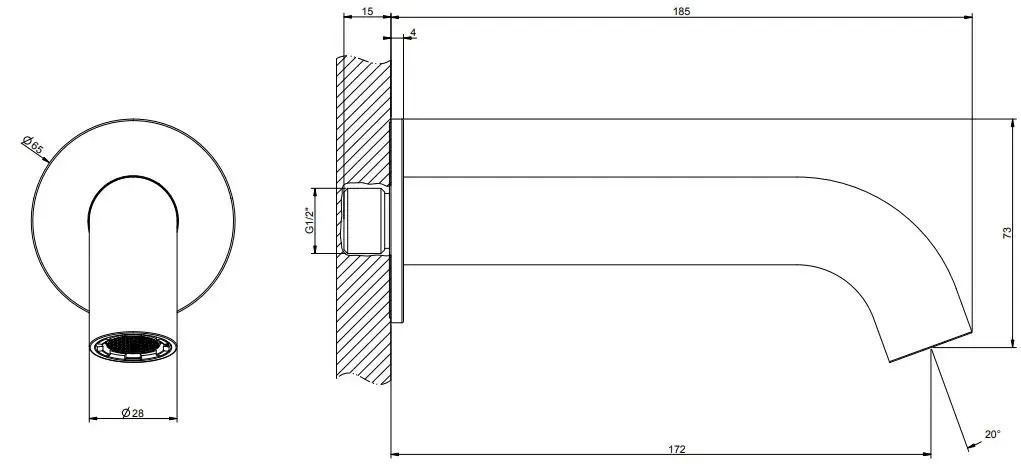 Излив Gessi GESSI316 54008#707 цвет-Black Metal Brushed PVD