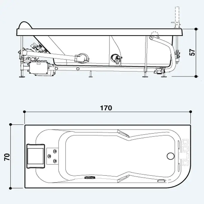 Jacuzzi Aquasoul AQU Ванна 170x70xh57 см, DX, без панелей, цвет белый/хром AQU-1006-2700 Dx