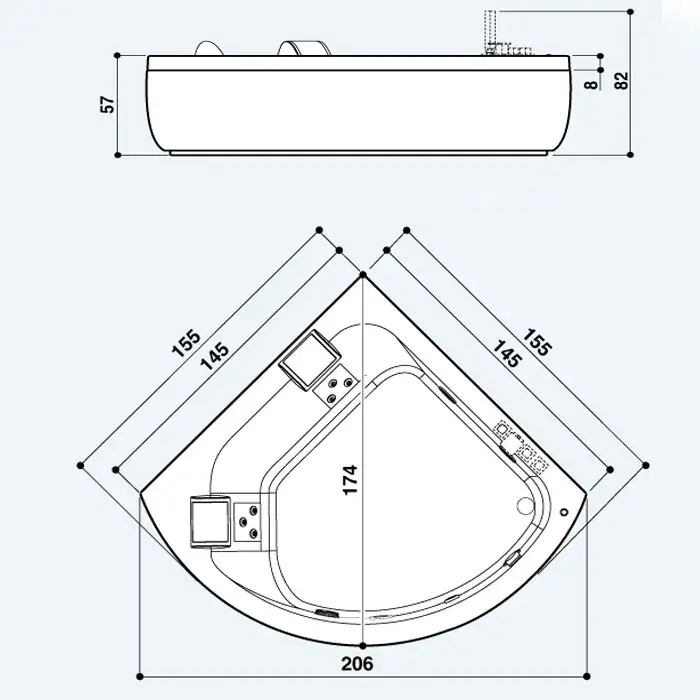 Jacuzzi Aquasoul Corner 155 R+C Ванна, 155x155xh57 см, смеситель, цвет белый/хром AQU60010700