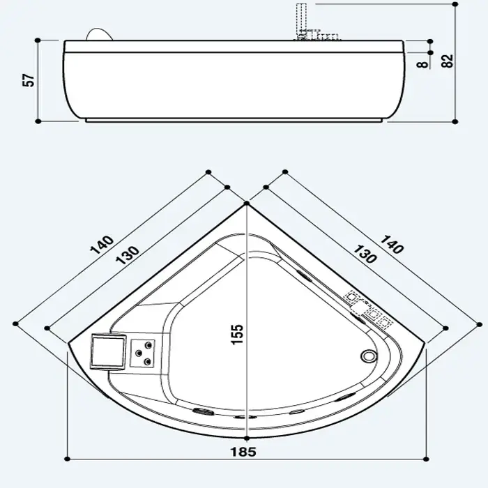 Jacuzzi Aquasoul Corner 140 AQU Ванна 130x130xh57 см, смеситель, цвет белый/хром AQU-4006-0741