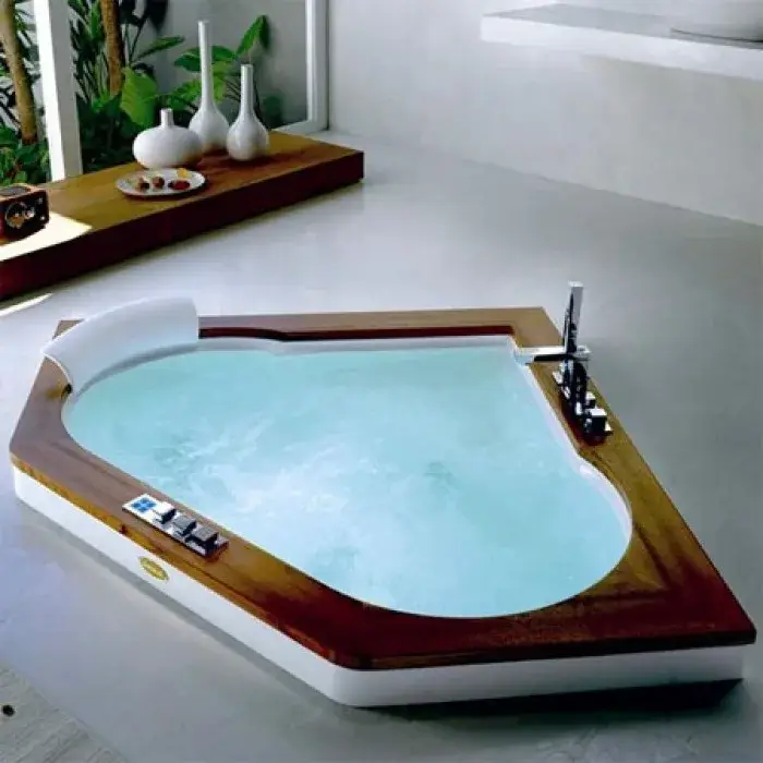Jacuzzi Aura Corner 160 Top Ванна 160x160xh60 см, R+C, с топом из дерева тик 9F43-518A