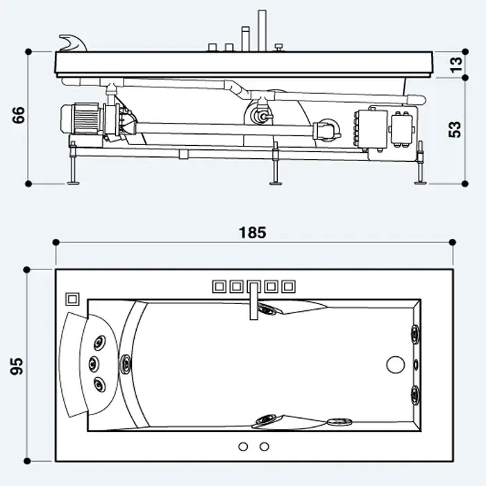 Jacuzzi Aura Uno Corian Ванна 185x95xh66 см, смеситель Aura, топ - Corian 9443-734A-7202-06300