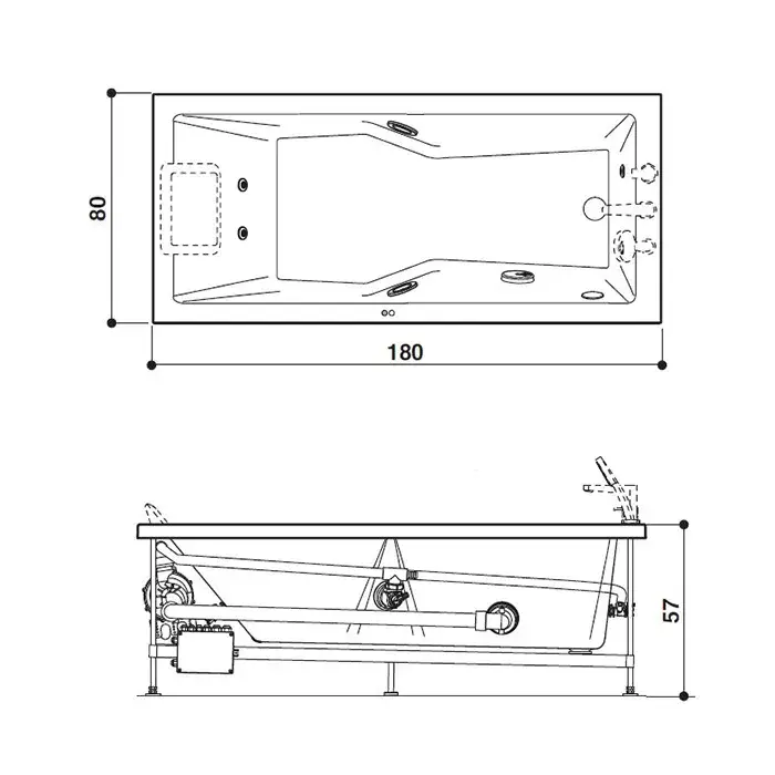 Jacuzzi Energy Ванна 180x80хh57 cм, без панелей, версия DX, цвет белый/хром ENE30122300
