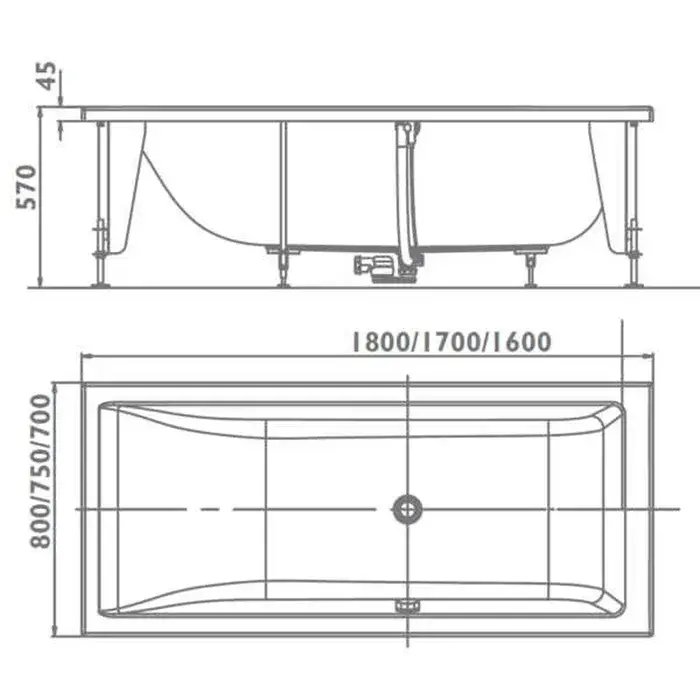 Jacuzzi Moove Ванна с основаниями, 170x70xh57 см, цвет белый полиров. 9450-426A
