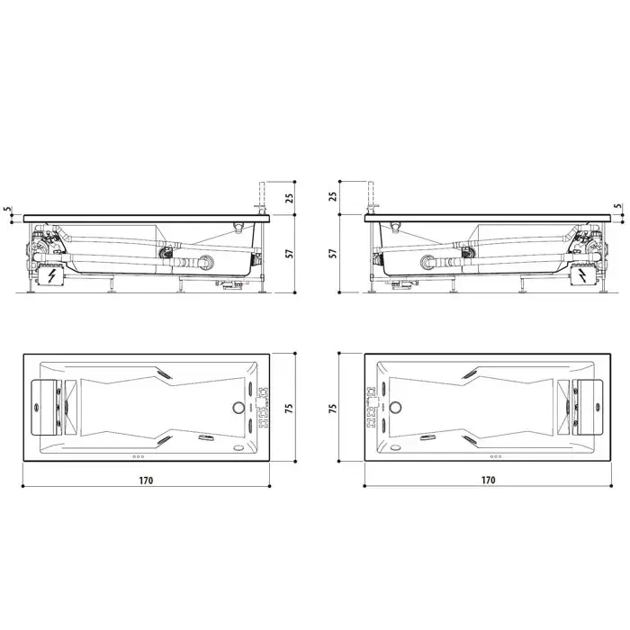 Jacuzzi Myway 170x75 Обратимые боковые панели, 70 см, цвет белый полиров. 9440-002A