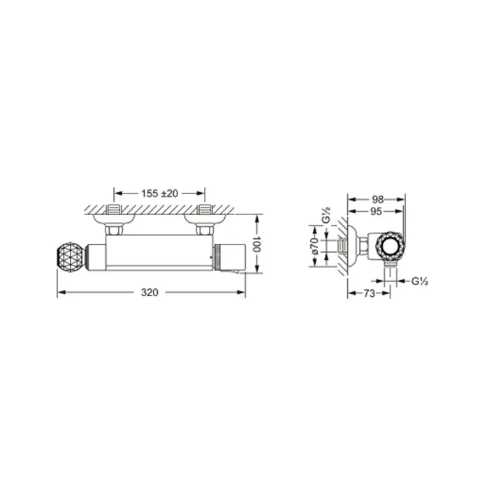 Jorger Cronos Crystal Термостатический смеситель, настенный монтаж, цвет: хром 637.20.250.000