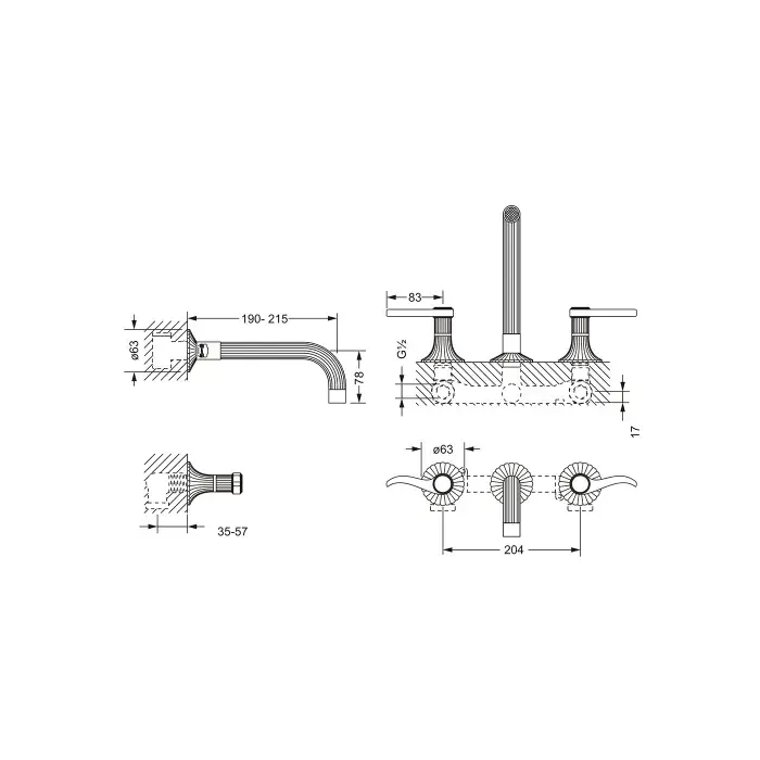 Jorger Cronos Смеситель для раковины, на 3 отверстия, настенный монтаж, цвет: хром 637.30.365.000