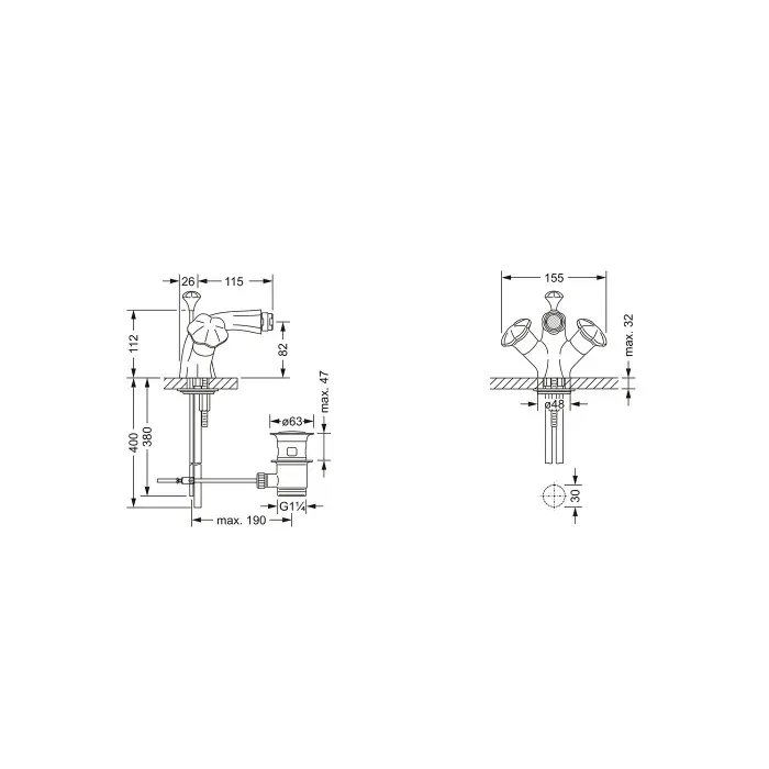 Jorger Florale Lotos Minarett Смеситель для биде, на 3 отверстия, цвет: хром 600.30.100.000