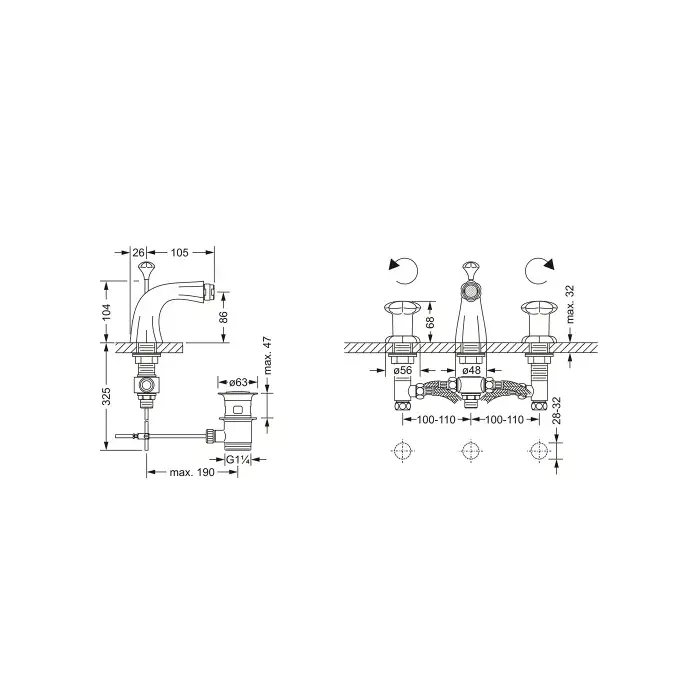 Jorger Florale Lotos Minarett Смеситель для биде, на 3 отверстия, цвет: хром 600.30.100.000