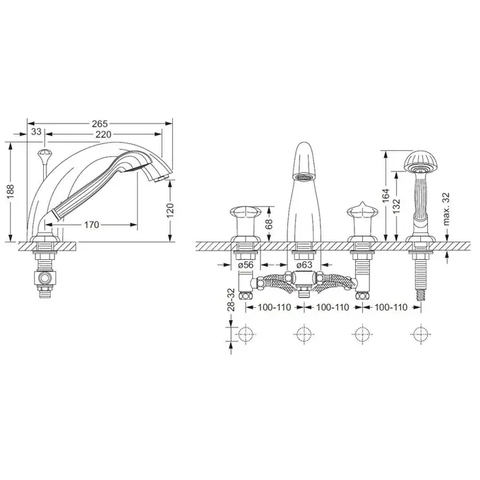 Jorger Florale Lotos Minarett Смеситель для ванны на борт, на 4 отв., цвет: хром 603.40.100.000