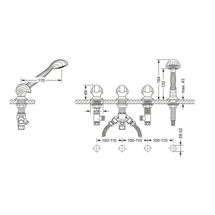 Jorger Muschel Смеситель для ванны, на 4 отверстия, монтаж на борт ванны, цвет: хром 601.40.150.000