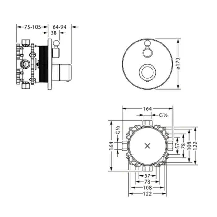 Jorger Muschel Термостат для душа скрытого монтажа с запорным вентилем, цвет: хром 611.40.360.000