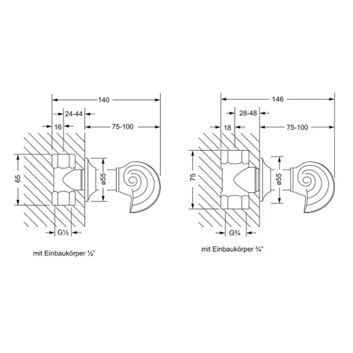 Jorger Muschel Термостатический смеситель, настенный монтаж, цвет: хром 601.20.250.000