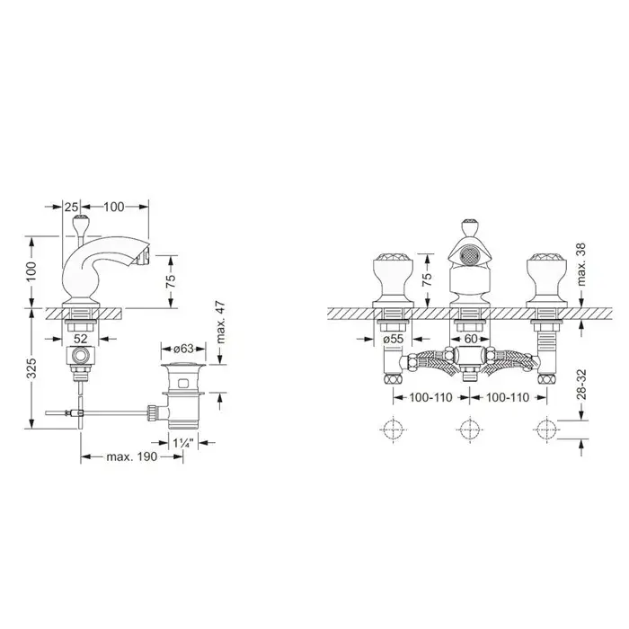 Jorger Palazzo Crystal Смеситель для маленькой раковины, на 3 отверстия, цвет: хром 605.30.200.000