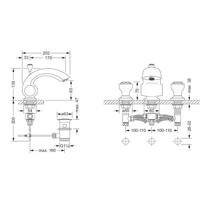 Jorger Palazzo Crystal Смеситель для маленькой раковины, на 3 отверстия, цвет: хром 605.30.200.000