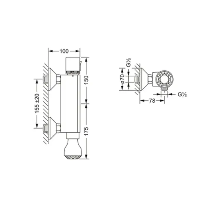 Jorger Palazzo Crystal Термостатический смеситель, настенный монтаж, цвет: хром 605.20.250.000