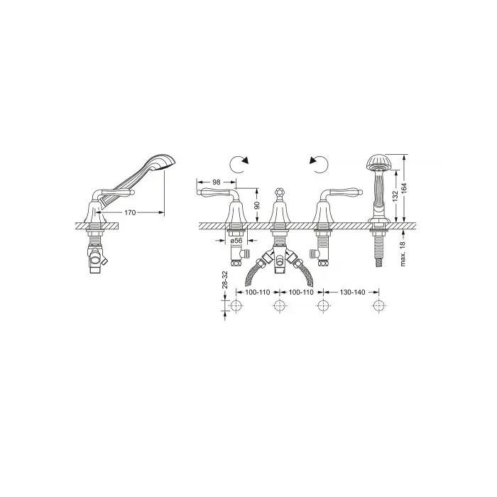 Jorger Ramses Albano Смеситель для ванны, на 4 отверстия, на борт ванны, цвет: хром 608.40.150.000