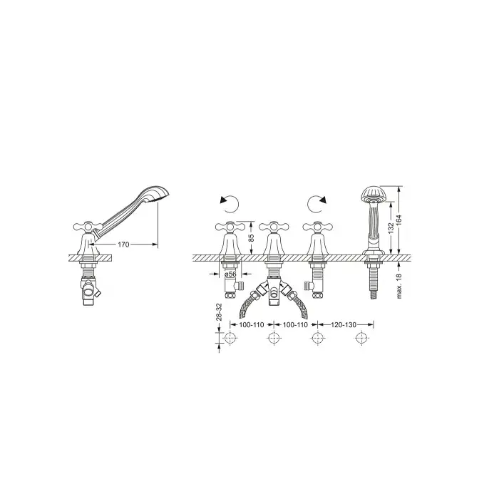Jorger Ramses Albano Смеситель для ванны, на 4 отверстия, на борт ванны, цвет: хром 611.40.150.000